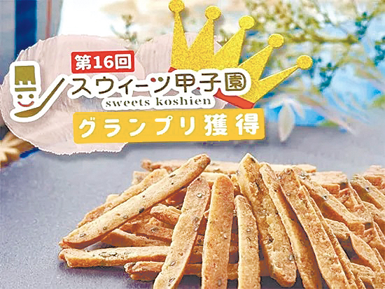 神戸市垂水区の障害福祉サービス事業所「音楽堂」が製造。自社の豆乳工場で出た新鮮なおからを県産サツマイモの生地と組み合わせ、一つ一つ丁寧に焼き上げた新感覚のお茶菓子です。1袋(60g)550円。インターネットでも販売しています。