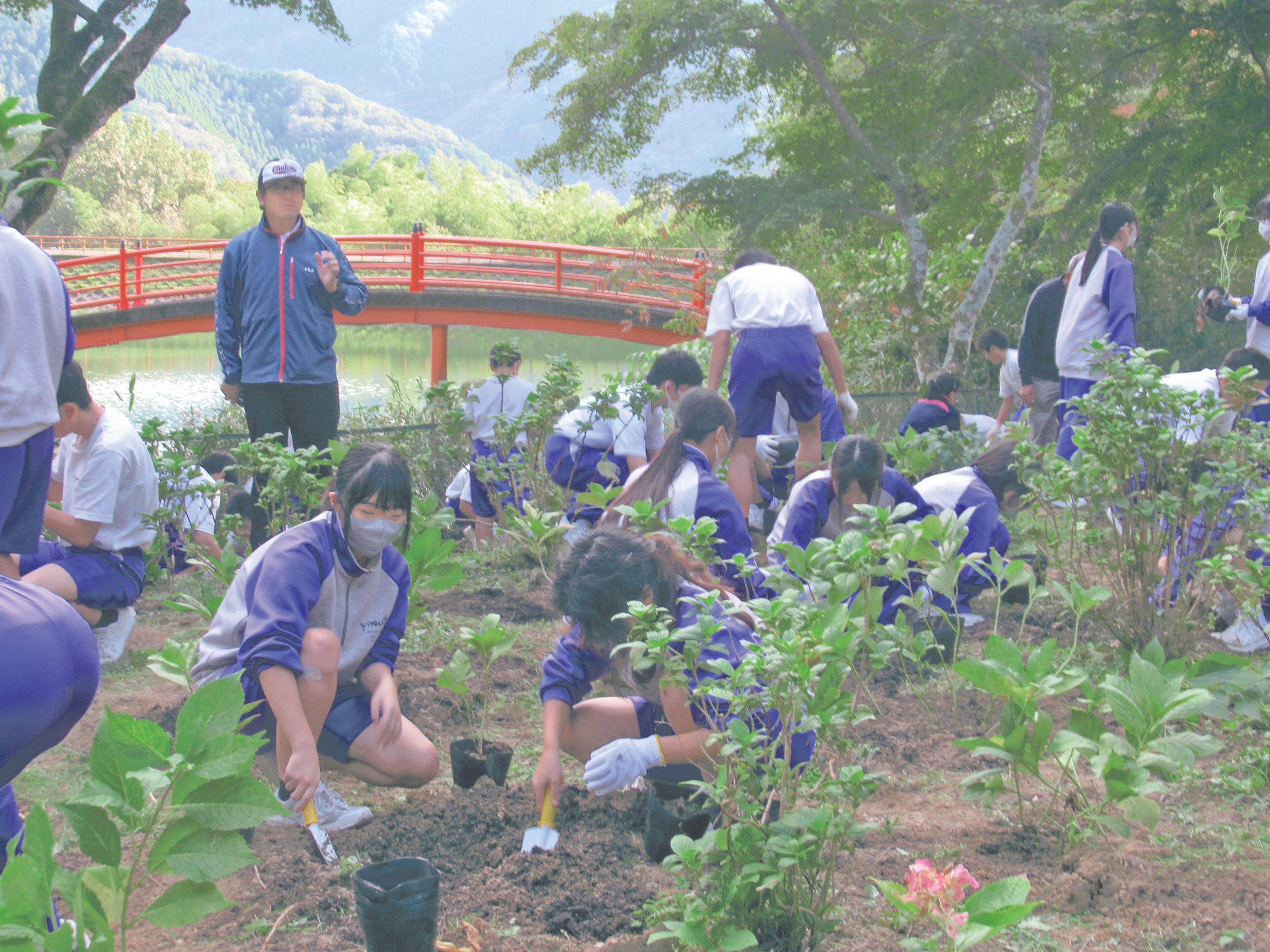 植栽作業の様子。安富中学校の取り組みは、昨年度の「ひょうごSDGsスクールアワード」で優秀賞を受賞しました。