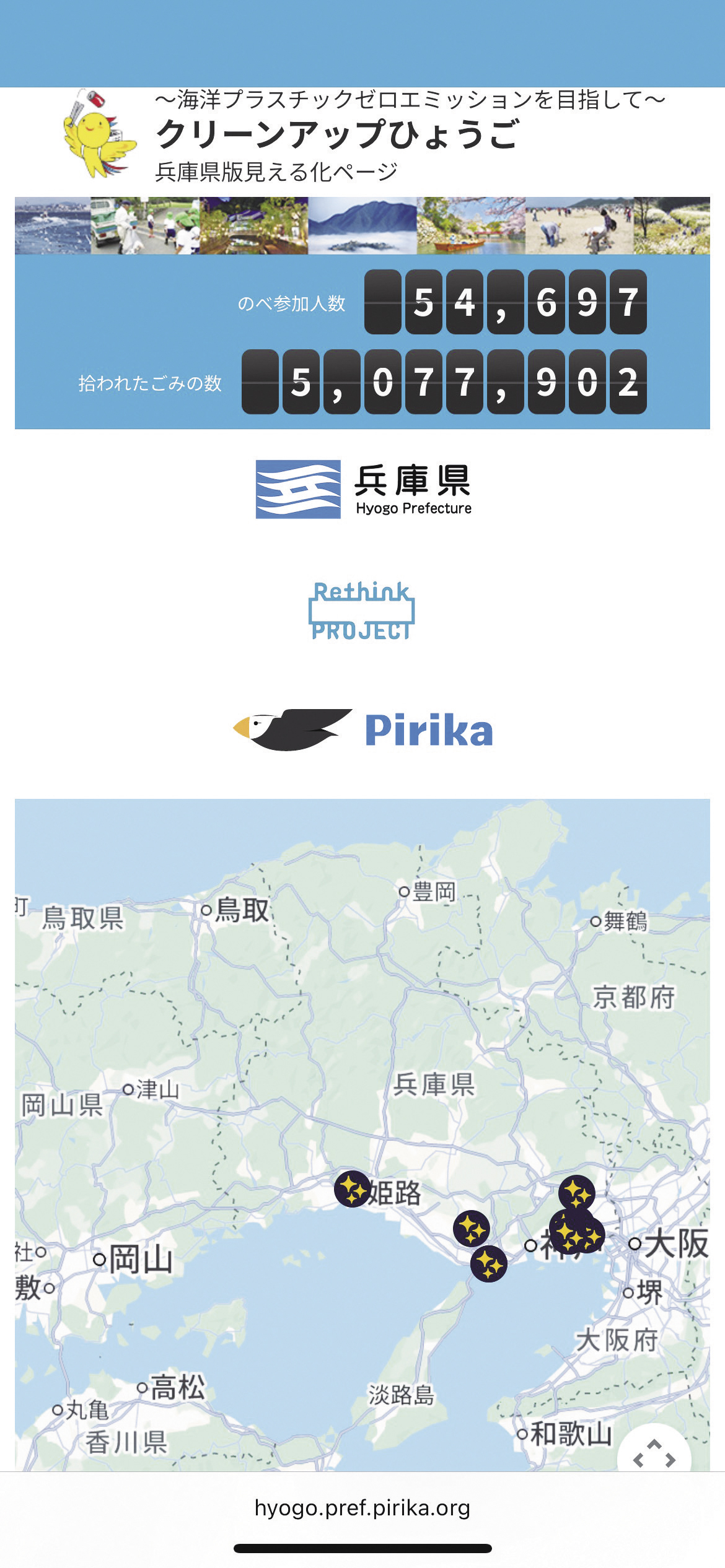 県ではごみ問題の解決を目指し、今年も5月30日の「ごみゼロの日」から、世界で一斉に地球を清掃する9月20日の「WORLD CLEANUP DAY」を含む9月末までの期間、県内各地で環境美化キャンペーンを展開、9月20日(土曜日)に、ごみ拾いイベント「Grateful Day」を開催します。また、一昨年には、ごみ拾いSNS「ピリカ」と連動した兵庫県版ページ「クリーンアップひょうご」も開設。「ピリカ」のアプリをダウンロードし、兵庫県で拾ったごみを撮影して投稿すれば、同ページに活動が記録され、利用者間の交流も。SNSを活用して、楽しみながらごみを拾いましょう。(県環境整備課)