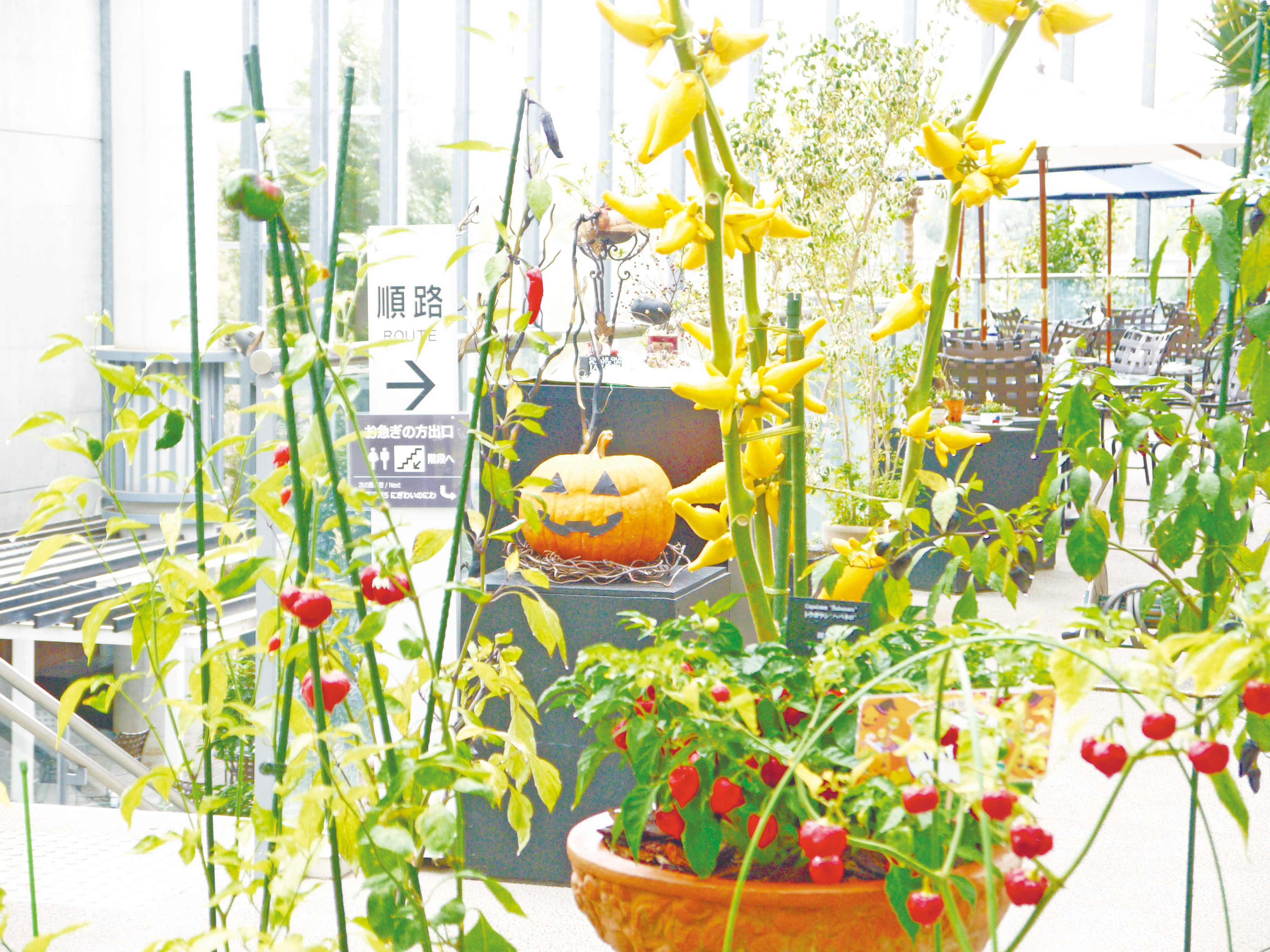 キク、ダリア、ケイトウなど、多彩な植物が色づき、実を結んでいく変化の様子を、アートな装いとともに楽しむ祝祭空間。11月2日(日曜日)には観月会も。