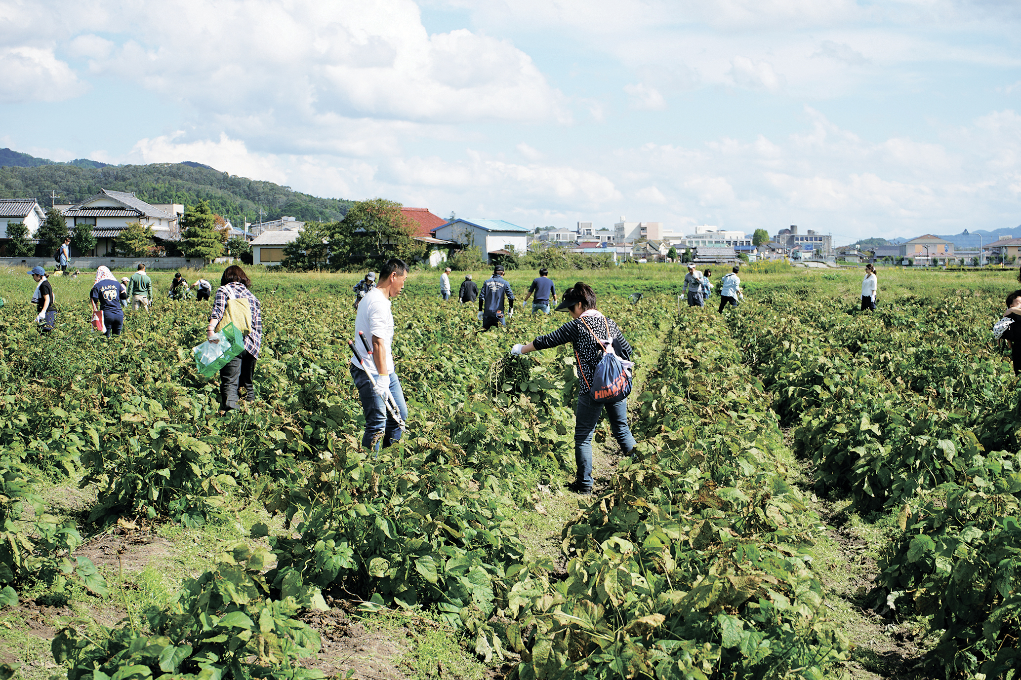 ※5月~6月は田植え体験、7月~8月は茶豆系統の枝豆、デカンショ豆狩りを実施