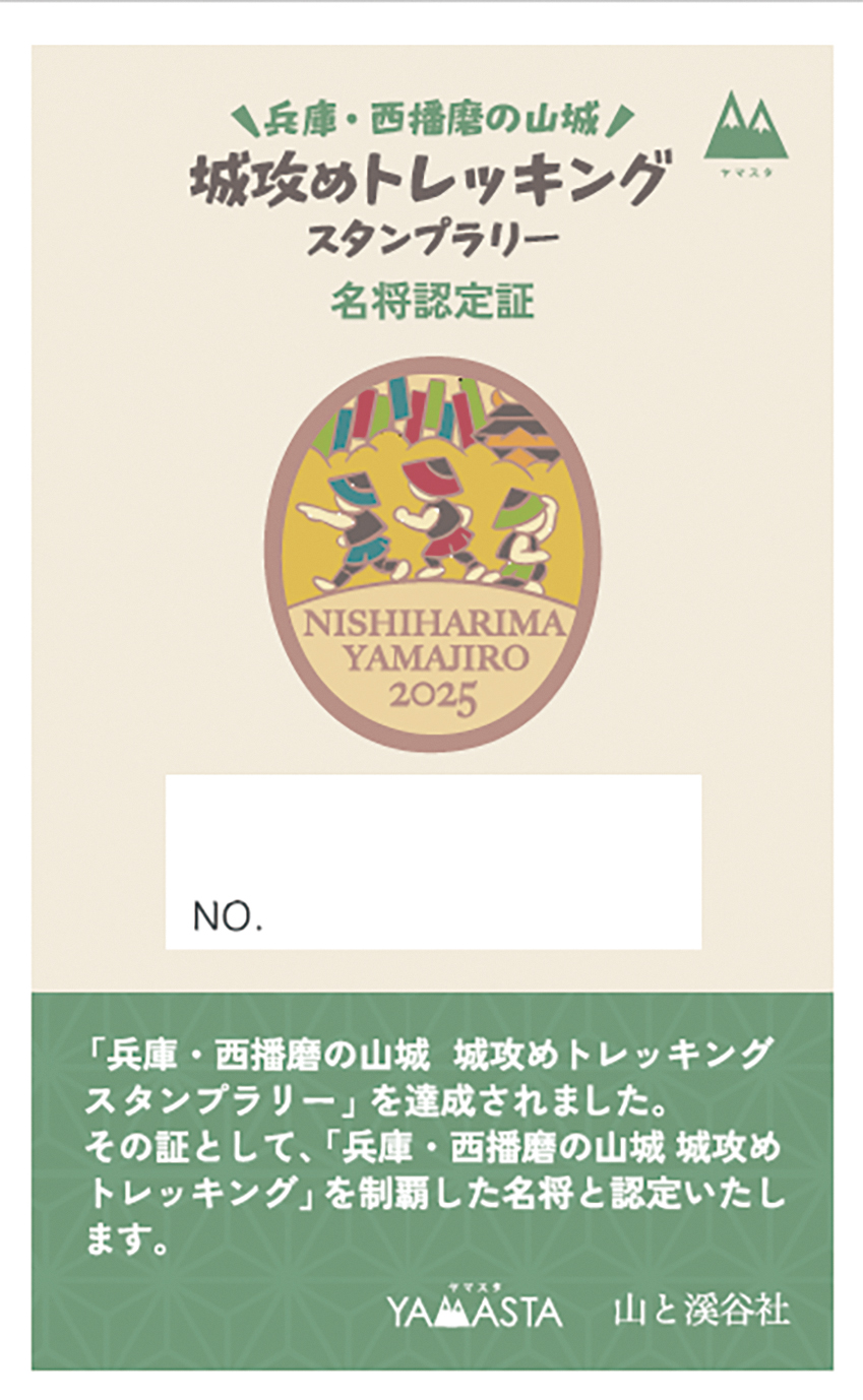 スマートフォンアプリ※を使って、西播磨地域を代表する10の山城を巡る「城攻めトレッキングスタンプラリー」を来年3月2日(月曜日)まで実施しています。3回目となる今回は佐用町の利神城が初登場。各城の所定ポイントでデジタルスタンプを獲得し、交換場所で提示すれば数量限定の攻略記念缶バッジがもらえます。また、全10城制覇で名将認定証に応募でき、その中から抽選で100人に山城統一記念ピンズが当たります。(西播磨県民局地域振興課)
