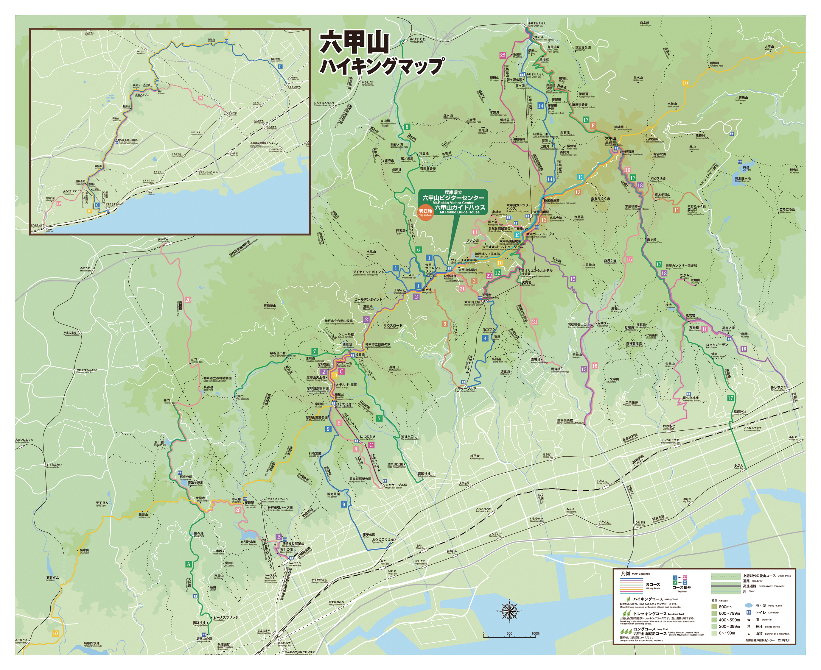 六甲山は開拓から130周年を迎えました。10カ所以上の登山口があり、初心者から健脚向けまで多様な登山道が整備されています。神戸県民センターでは、22のコースの特徴を距離や所要時間と共に紹介する「六甲山ハイキングマップ」をウェブ上で公開していますので、自分の体力に合ったコースで山歩きを楽しんでください。11月は有温泉近くの紅葉谷や、西宮市北部の蓬莱峡の紅葉が特にきれいですよ。(神戸県民センター県民課)