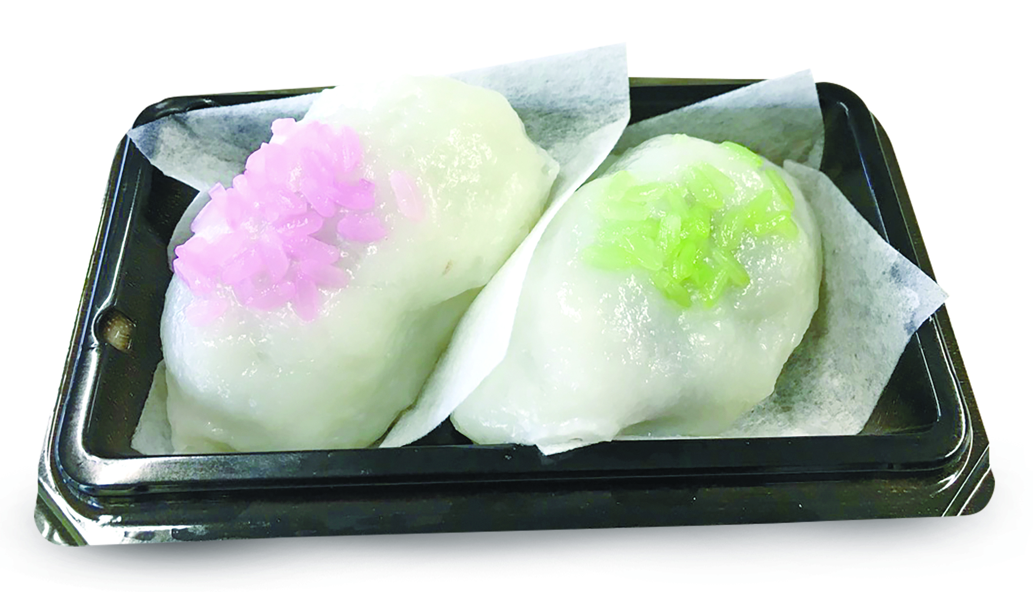 三田市では江戸時代から、歳末の大売り出し「誓文払い」で米粉を使った「米(よね)まんじゅう」が販売されてきました。現在も市内3つの和菓子店の4店舗で歳末の3日間(今年は12月19日(金曜日)〜21日(日曜日))だけ店頭に並ぶ予定です。こしあん入りでピンクや緑に着色したもち米で飾られた、彩り鮮やかな一品です。(本紙編集部)