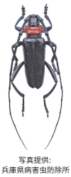 サクラなどに寄生して木を枯らす特定外来生物、クビアカツヤカミキリの早期発見・駆除に力を入れています。県内では2022(令和4)年に明石市内の石ケ谷公園で初めて見つかり、県立明石北高校科学探究部生物班が調査や啓発活動を実施。その取り組みはひょうごSDGsスクールアワード※の24年度優秀賞に選ばれました。