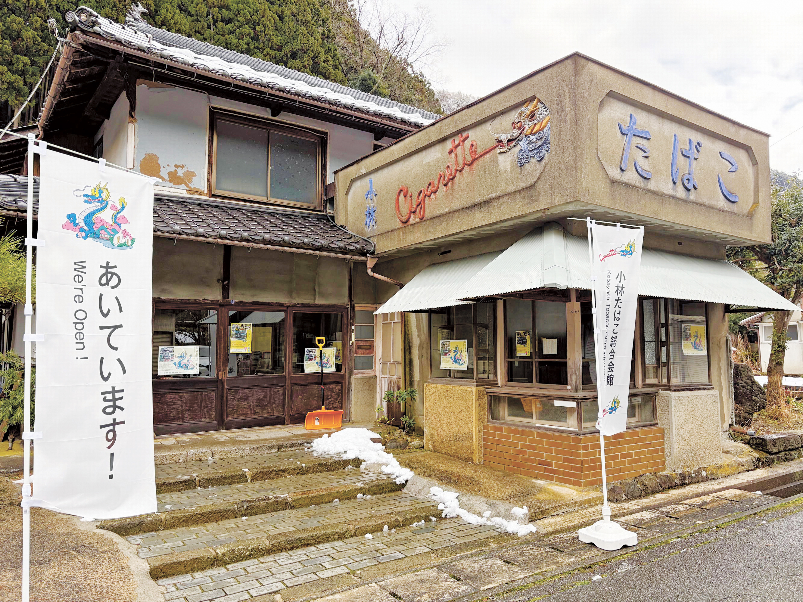 かつて鉱山のまちとして栄えた養父市明延区は、現在では40人ほどが暮らす限界集落に。鉱山関係者が集まったまちの象徴的な場所「小林たばこ屋」も10年前から空き家になっていましたが、2023(令和5)年11月、看板に施された左官の鏝絵(こてえ)がSNSで注目を集めます。それをきっかけに、地元住民から「たばこ屋を残してほしい」という声が出るようになり、NPO法人但馬を結んで育つ会やコミュニティデザインラボ(宮崎県)、養父市社会福祉協議会が協働で空き家を再生。資金はクラウドファンディングや補助金などで賄いました。25年6月に「小林たばこ総合会館」として生まれ変わった建物は、住民ボランティアの協力を得て毎週火曜に開館。地元野菜や生活用品を扱う「明延購買部」、鏝絵の龍をモチーフにしたキャラクターグッズを販売する「空想土産屋」を運営し、オンライン診療「テレビ病院」の実証実験も始まりました。住民からは「毎週ここに来るのが楽しみ」との声が聞かれ、笑顔が集まる場所になっています。これからも“限界集楽”をテーマに、会館を「限界を超えて楽しいを集める場」にしていきます。((社福)養父市社会福祉協議会事務局長 吉田明博さん)