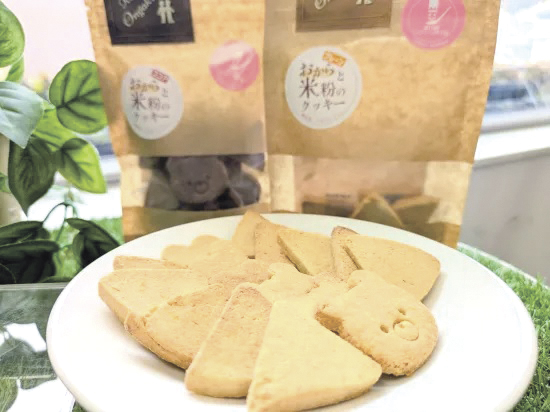 神戸市垂水区の障害福祉サービス事業所「音楽堂」が添加物を一切使わずにおからと米粉で焼き上げた、グルテンフリーのヘルシーなクッキー。プレーンとココアの2種類があり、1袋(80g入り)550円。
