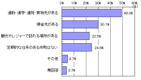 「通勤・通学・通院・買い物先がある(49.0%)」が最も高く、「帰省先がある(30.1%)」が続いている。