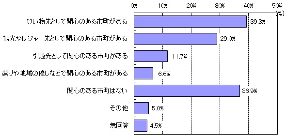 「買い物先として関心のある市町がある(39.3%)」が最も高く、「関心のある市町はない(36.9%)」が続いている。