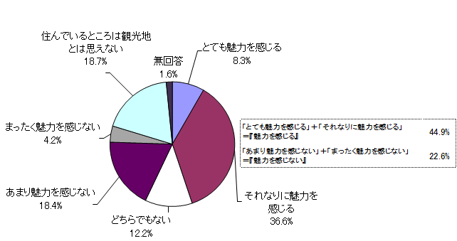 「とても魅力を感じる」と「それなりに魅力を感じる」を合わせた『魅力を感じる』は44.9%、「あまり魅力を感じない」と「まったく魅力を感じない」を合わせた『魅力を感じない』は22.6%となった。