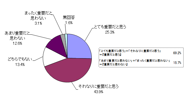 「とても重要だと思う」と「それなりに重要だと思う」を合わせた『重要だと思う』は69.2%、「あまり重要だと思わない」と「まったく重要だと思わない」を合わせた『重要だと思わない』は15.7%となった。