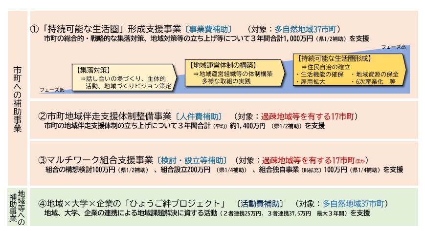 県と市町が重層的に地域支援を行う体制を整え、地域における持続可能な生活圏づくりを支援する「持続可能な多自然地域づくりプロジェクト」に関する情報を掲載しています。