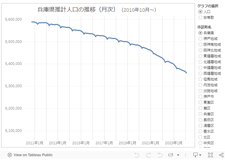 令和8年3月1日現在の兵庫県の推計人口は、5,293,340人となっており、前月に比べ4,058人減少している。