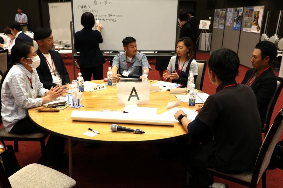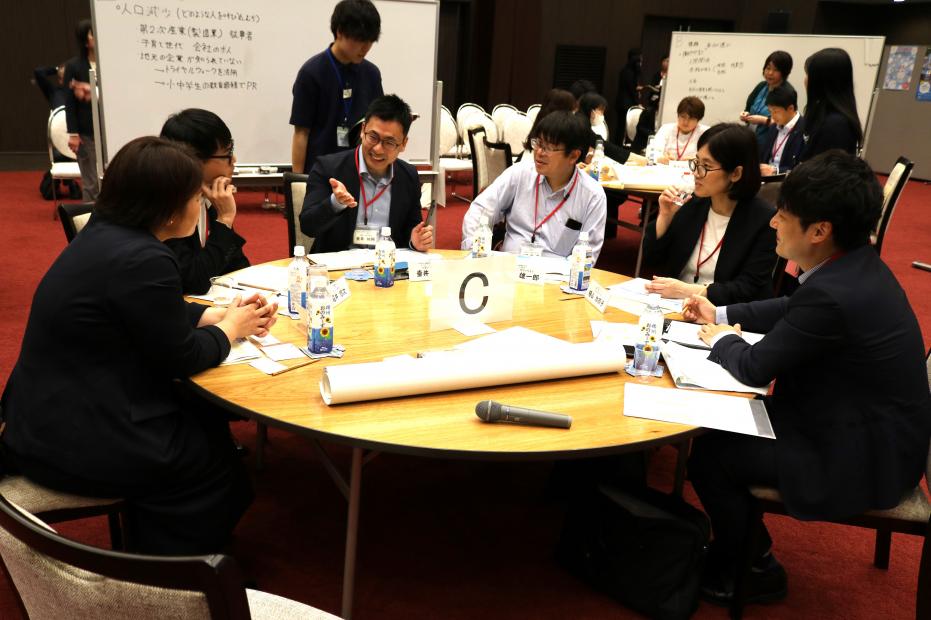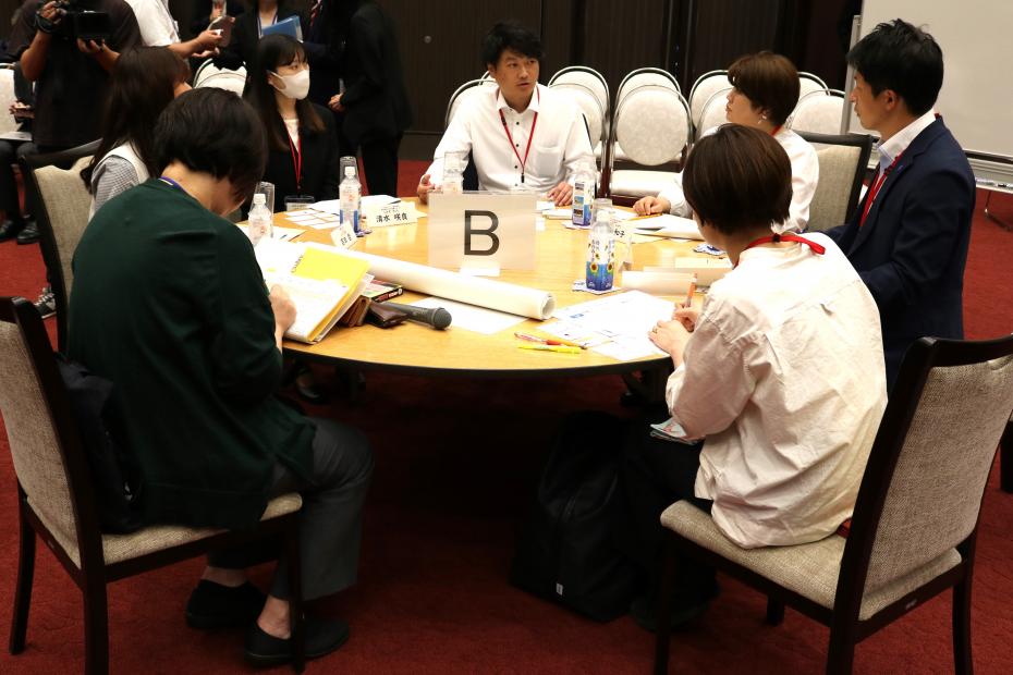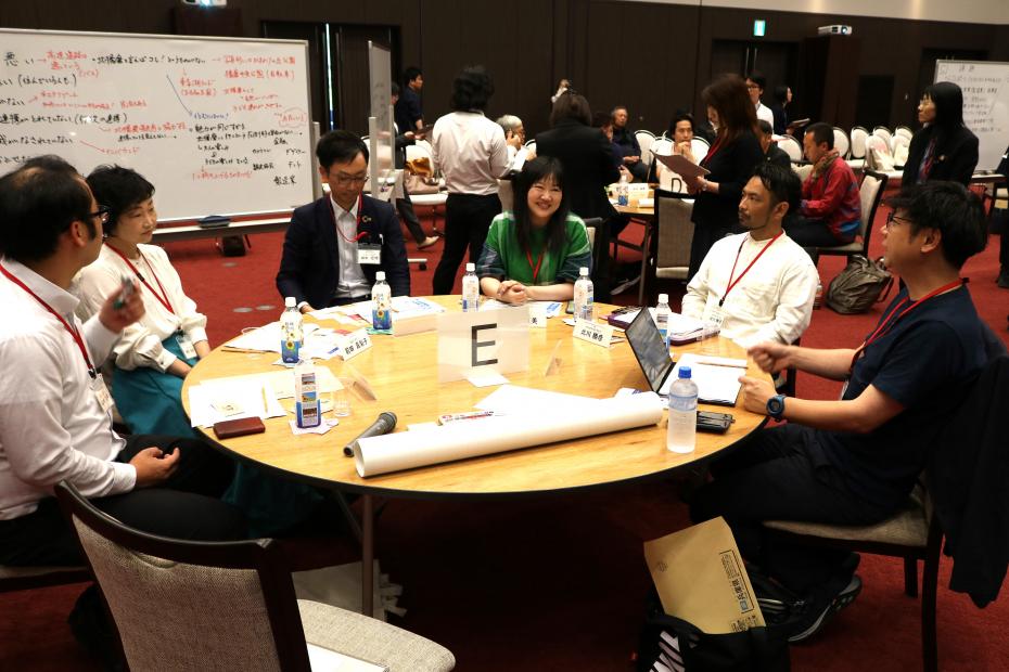 テーマごとにA~Eのグループに分かれ、地域の課題や課題解決に向けたアイデアについて話し合いました。