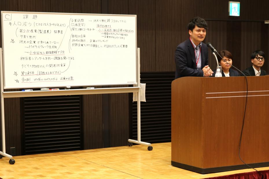 - 県外に出て行ってしまう子どもが多いのは、小学校から高校までの教育課程で、地元の企業を知る機会が無いからではないか。