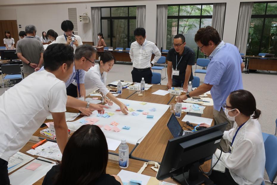 テーマごとにA~Eのグループに分かれ、地域の課題や課題解決に向けたアイデアについて話し合いました。