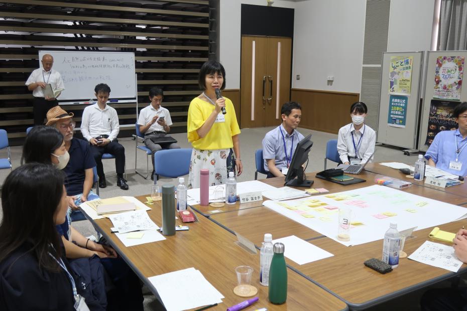 雄大な自然を有し、県内有数の観光地である淡路地域において、関西圏だけでなく首都圏など全国から訪れてみたい観光先として認知されるための課題や課題解決に向けたアイデア等について、フィールドパビリオン関係者や自然体験活動などに携わる参加者が意見交換を行った。