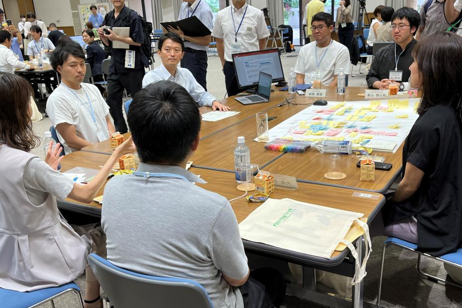 担い手が高齢化し、生産量が減少している淡路地域の農畜水産業において、これからも安定的で持続的な農畜水産物が供給できる体制づくりや淡路島発の食の魅力発信に向けた課題や課題解決のアイデア等について、農業や漁業の生産者、農業支援ビジネスなどに携わる参加者が意見交換を行った。