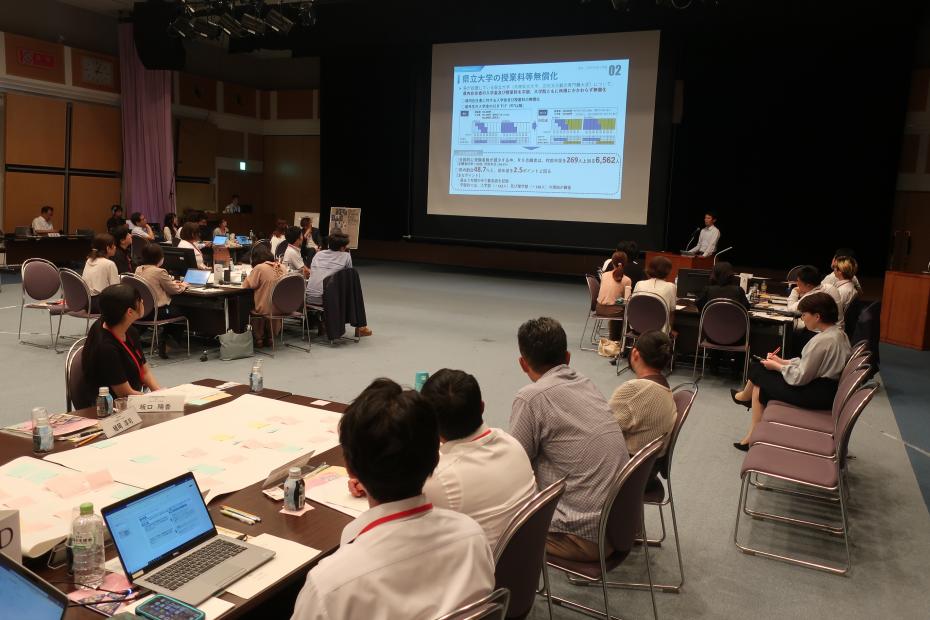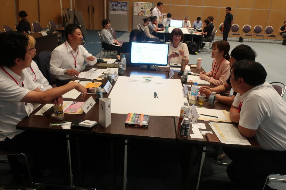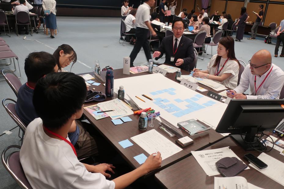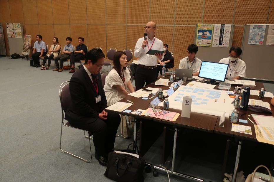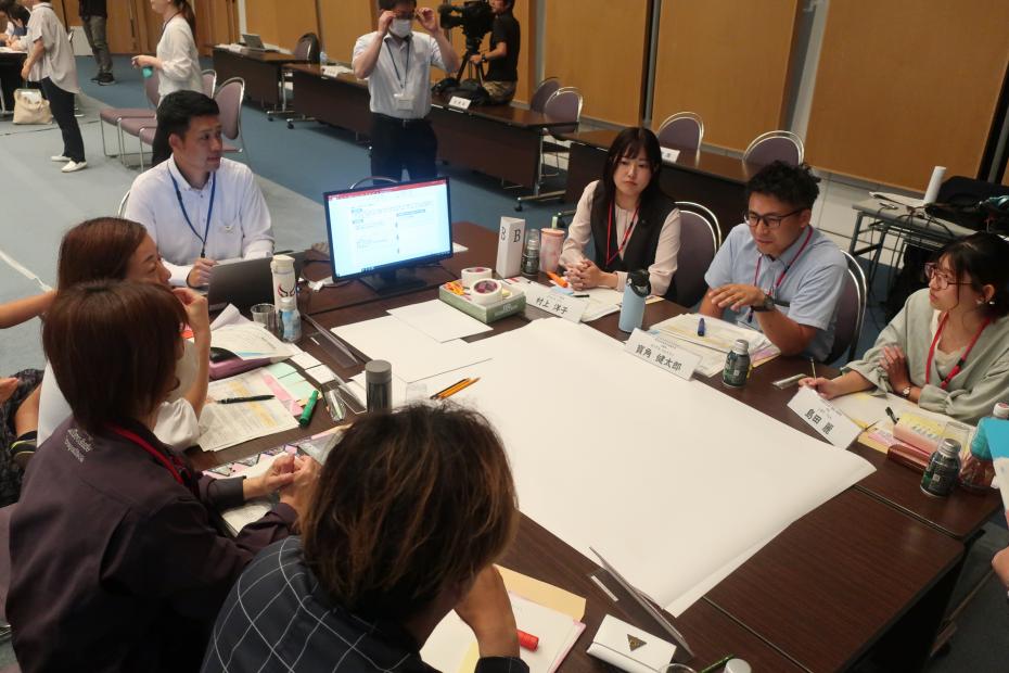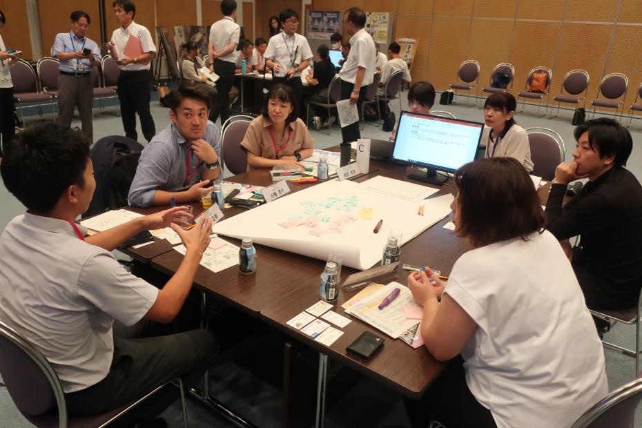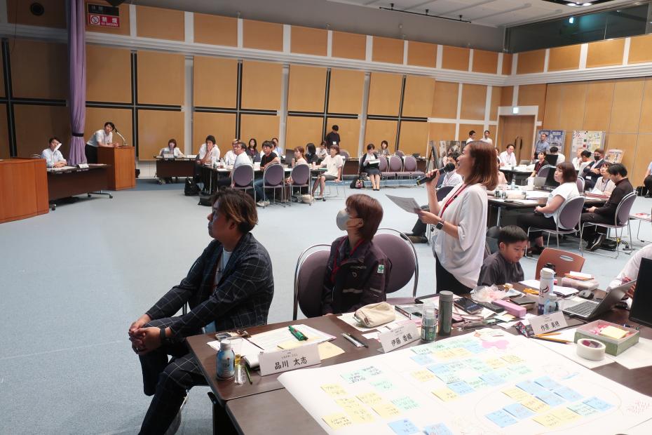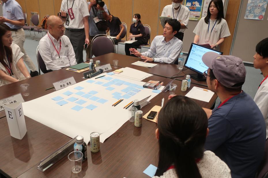テーマごとにA~Eのグループに分かれ、地域の課題や課題解決に向けたアイデアについて話し合いました。