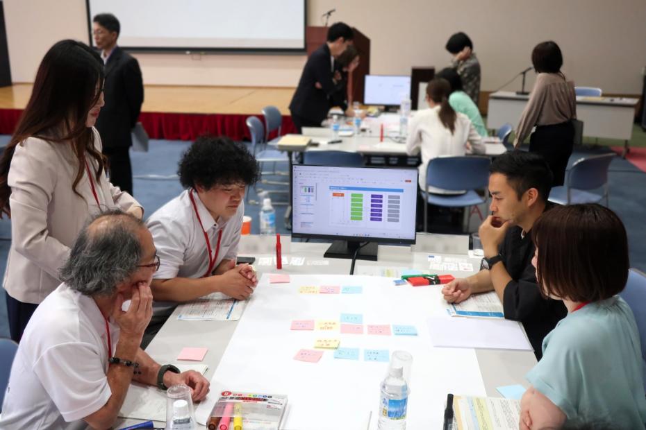 テーマごとにA~Eのグループに分かれ、地域の課題や課題解決に向けたアイデアについて話し合いました。