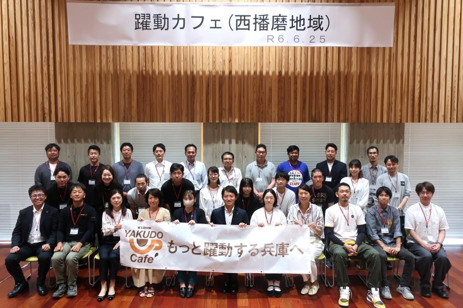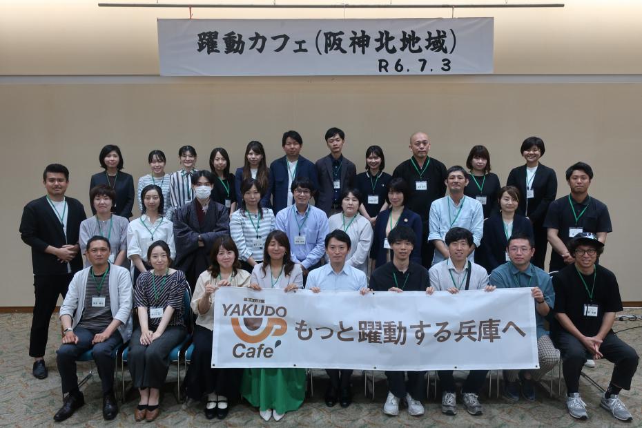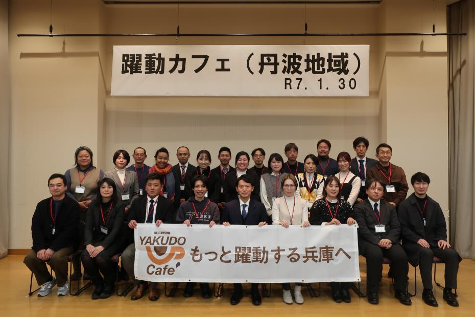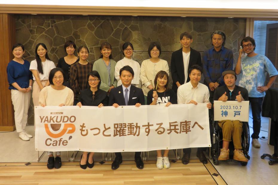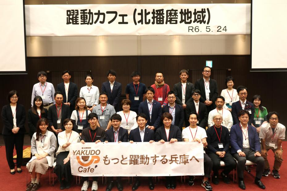 知事と地域で活躍する県民の皆様が直接対話を行う「躍動カフェ」を令和5年度から開催しています。「もっと躍動する兵庫へ」をキーワードに、地域ごとにテーマを決め、より良い地域づくりに向けて、共に考え、語り合います。