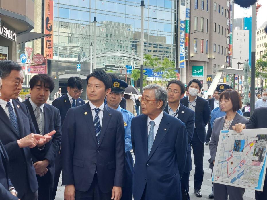 西宮市における客引き行為禁止地区の指定について、4月2日に西宮市長から知事への要請書が提出されたことに伴い、阪急西宮北口北西地域の視察を行いました。