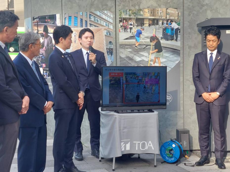 参加者:兵庫県、神戸市、生田警察署、TOA株式会社、地元商店街関係者