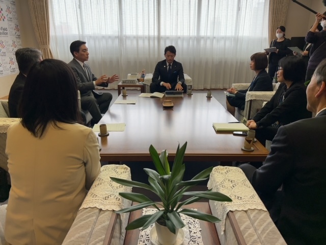 西宮市における客引き禁止地区の指定について、知事と西宮市長との面談が行われ、西宮市長から正式に要請書を受理しました。