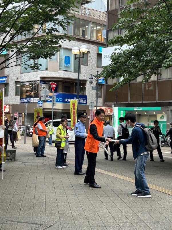 令和6年5月1日に禁止地区に指定したことを周知徹底し、「客引きをしない、させない」こと、「客引きについて行かない」機運を醸成するため、両地区において客引き防止キャンペーンを実施しました。