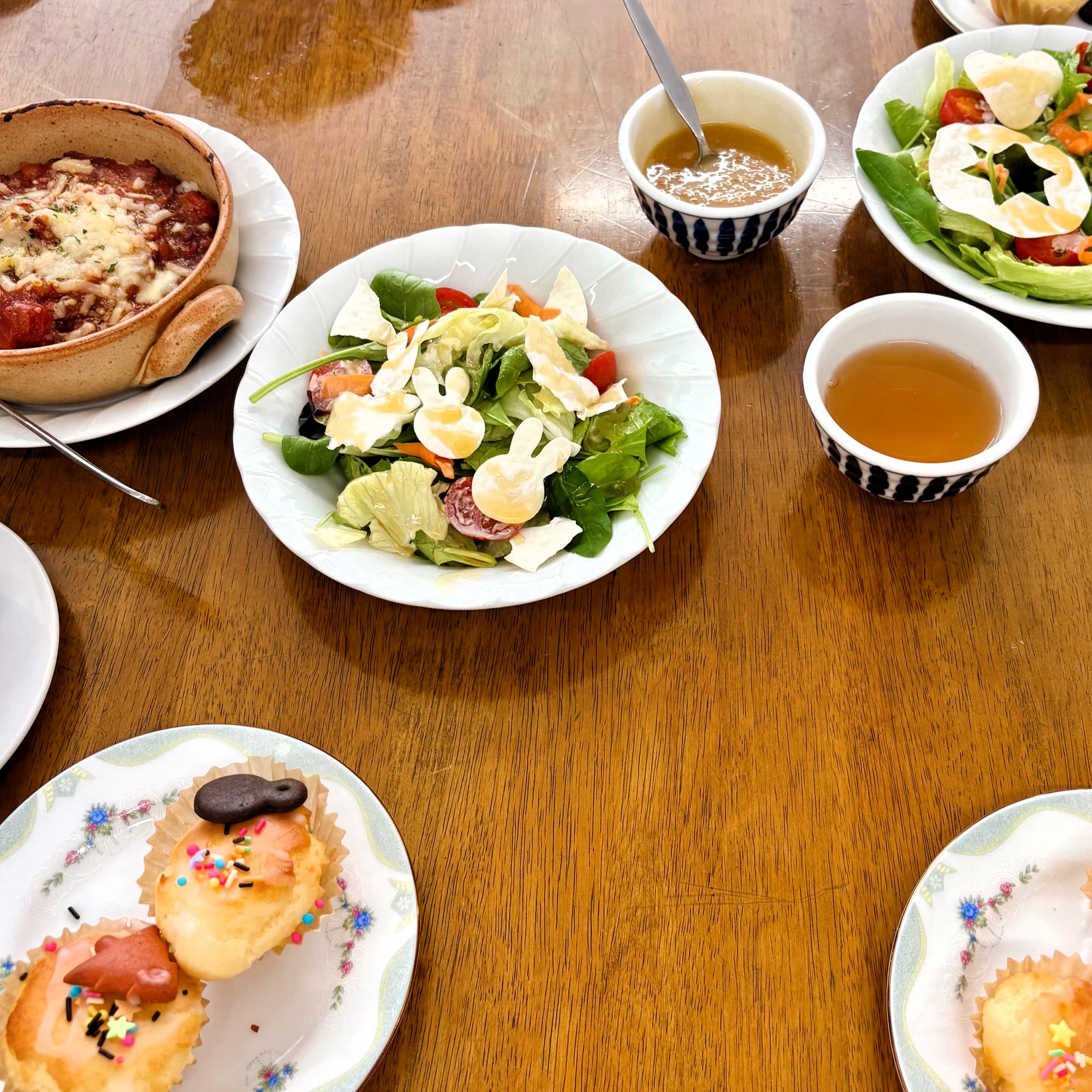 今回の献立は【ミートドリア、リーフサラダ、米粉のカップケーキ】でした!