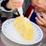 6.皿に盛り付けホイップクリームで飾ったら完成!