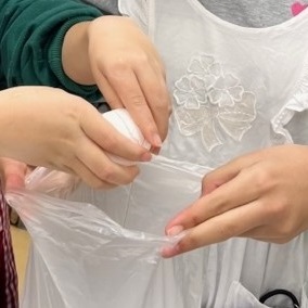 ポリ袋の口を結び、袋が破けないように、優しく袋を揉んでバナナを潰す
