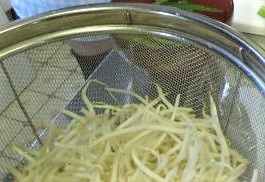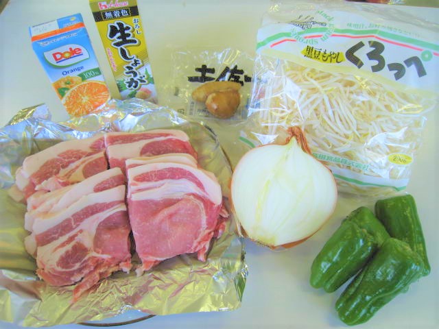 1. もやしは洗い、たまねぎは薄切り、ピーマンは種をとり縦に5mm幅に切る。”A”の調味料を合わせておく