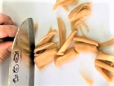 2. ずいきは水に浸し、アク抜きをしてから切る
