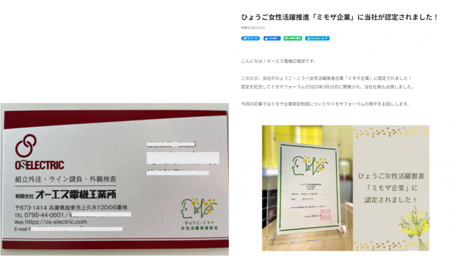 社員に「ミモザ企業」の意義を含めて共通理解をすることで、社員全員が社会的責任を意識するとともに、我が社のイメージアップにつながると確信しています。