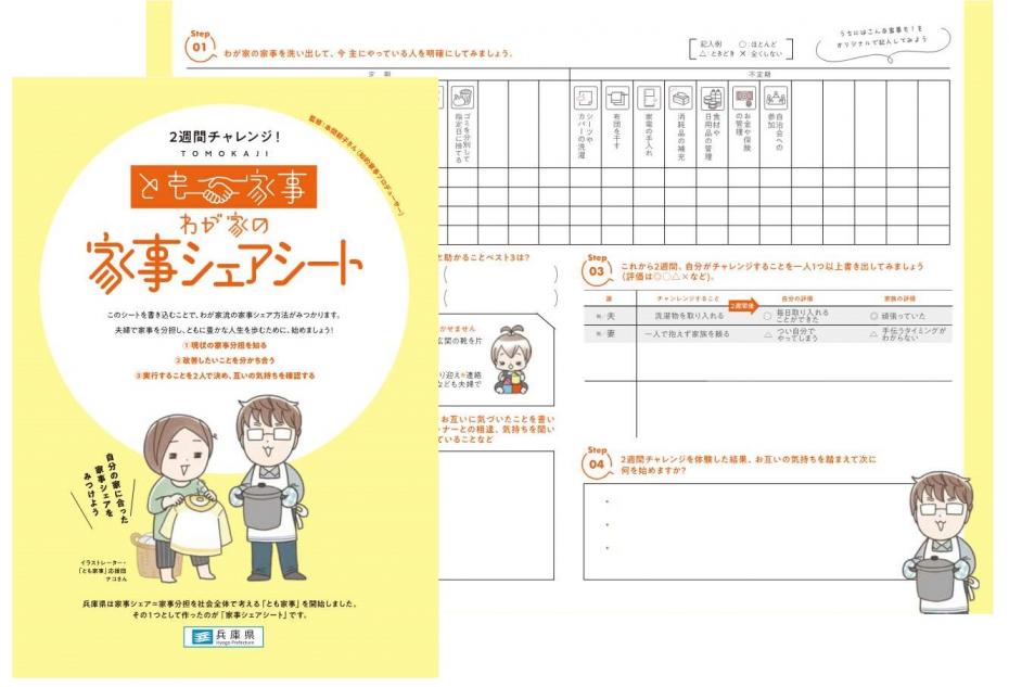 県では、まず夫婦で現状の家事について話すきっかけになる「家事シェアシート」を作りました。