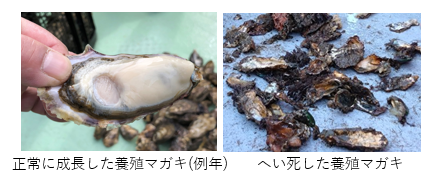 - 今年の養殖マガキは10月下旬から水揚げが開始されたが、県内のほぼ全地区で多くの養殖マガキがへい死。そのため、生産者の経営支援と観光誘客支援の両面から必要な対策を実施