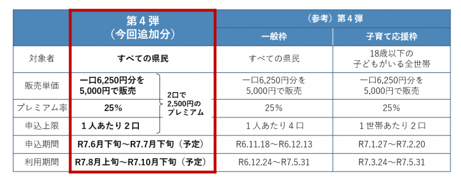- 米価高騰など、⾧期化する物価高騰の影響を受ける県民の家計を応援し、個人消費の下支えをするため、はばタンPay+第4弾の一般枠を拡充し、追加販売