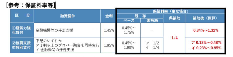 【事業内容】県制度融資において、金融機関等の伴走支援を条件とする資金に対して保証料を補助