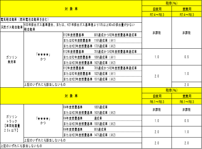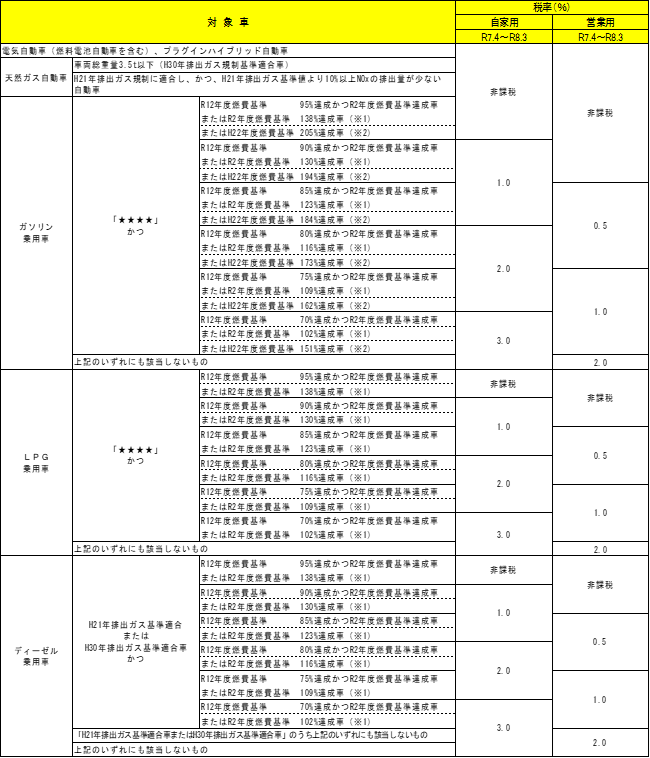 ホーム > 暮らし・教育 > 生活 > 税金・公金収納 > 県税のあらまし > 自動車税・軽自動車税の環境性能割の税率が令和7年4月から変わります