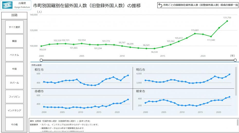 在留外国人数(旧登録外国人数)の推移2000年以降の市町別・国籍別の在留外国人数と構成の推移 ![]() (外部サイトへリンク)(別ウィンドウで開きます) |