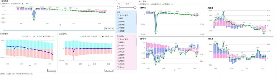 近年の人口増減の推移1989年以降の市町別の社会増減・自然増減の推移 |