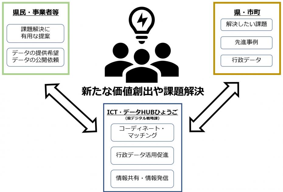 ご要望に応じて、「ICT・データHUBひょうご」が県・市町の担当部署との調整を行います。
