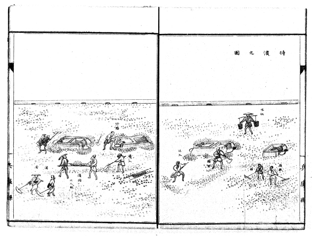 兵庫県製塩図解は、兵庫県の重要産物であった赤穂塩業について、明治22年に兵庫県勧業課が製造の方法等を調査してまとめたものです。上巻、下巻の2巻からなり、説明文と詳細な図面から構成されています。