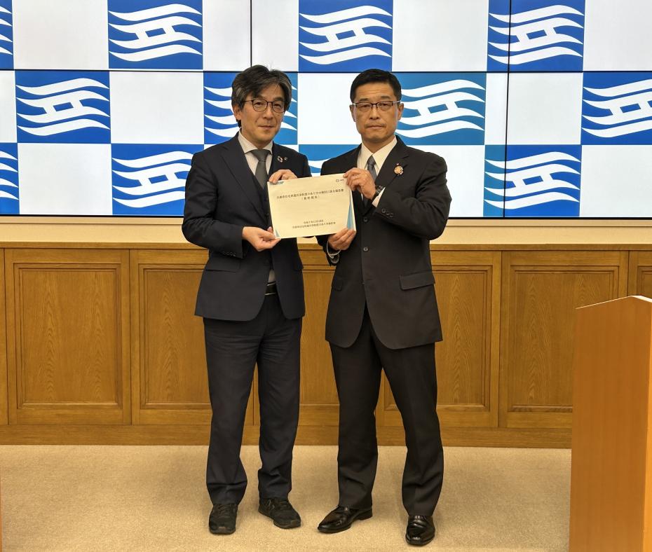令和7年11月10日(月曜日)、「兵庫県住宅再建共済制度のあり方検討会最終報告書」について、同検討会の永野座長から池田防災監へ手交されました。