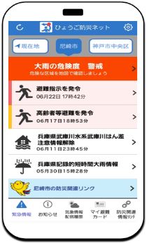 「ひょうご防災ネット」は兵庫県および兵庫県内の市・町から「避難に関する情報」などの緊急情報や、地震、津波、気象情報などの防災に関する様々な情報を利用者の方々に提供するサービスです。