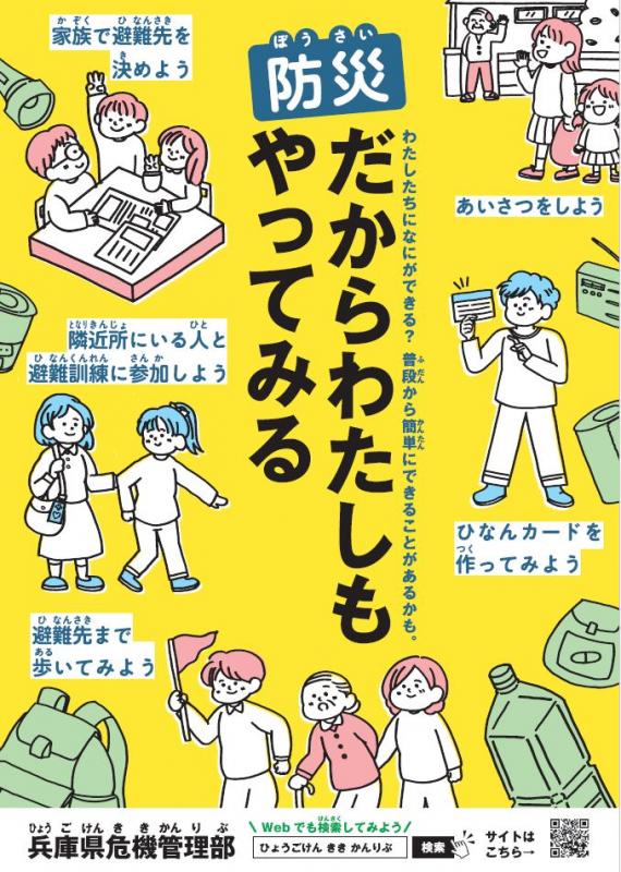 「ひょうご防災減災推進条例」に基づき、阪神・淡路大震災の経験と教訓を発信し、安全・安心な社会づくりを推進するため、地域団体などの県民の皆さんによる、日々の生活の中で防災減災に取り組む「災害文化」を広める事業を支援しています。