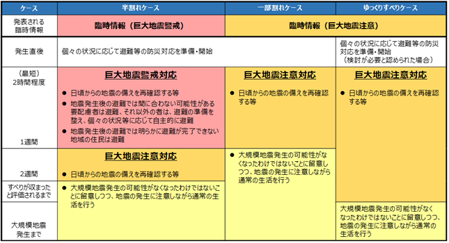 出典:内閣府ホームぺージ(南海トラフ地震臨時情報が発表されたら! : 防災情報のページ - 内閣府)