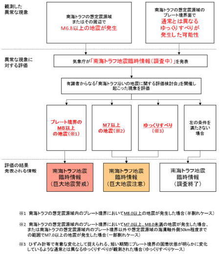 南海トラフ地震臨時情報は下図の流れで発表されます。