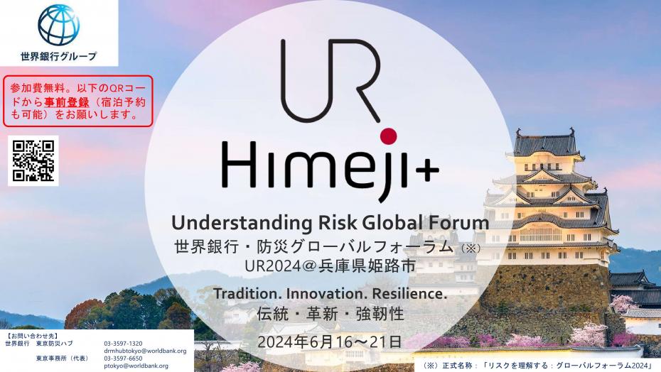 来年、阪神・淡路大震災から30年、そして万博が開催されるに先立ち、本年6月に世界銀行が、国内で初となる防災に関する国際会議「防災グローバルフォーラム2024:自然災害リスクへの理解を深める」(UR2024)を開催します。